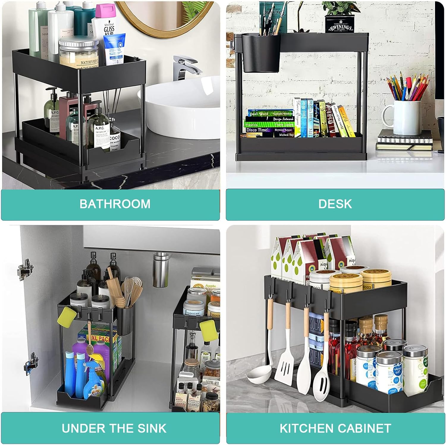 Versatilidad de Uso: ideal para organizar productos de limpieza, utensilios de cocina, cosméticos o artículos de baño, adaptándose a diversas necesidades.